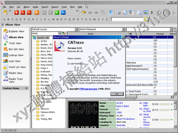 FNProgramvare CATraxx CATraxx是一個好用的音頻文件管理數據庫,支援CDDB數據庫,用戶