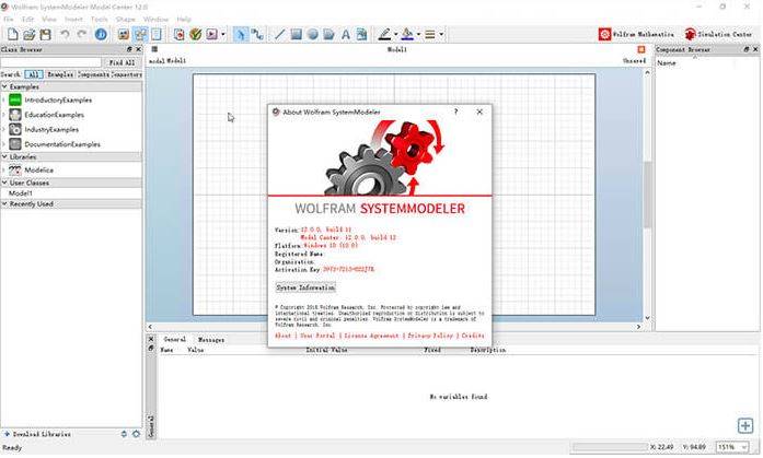 Wolfram SystemModeler 主界面 Model Center 是一個互動圖形環境,包括一組自