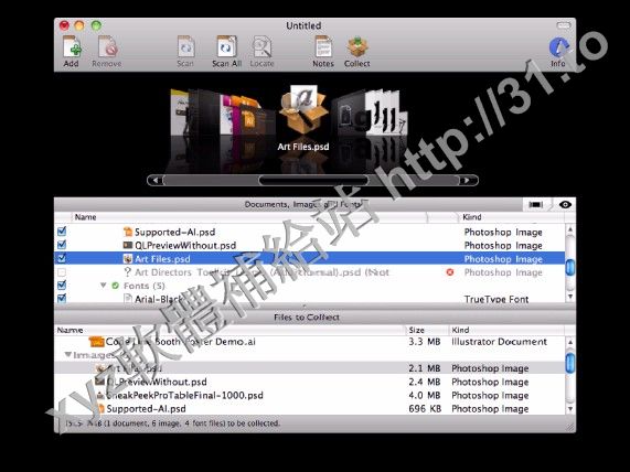 件同時搜集資源,支援置入的 EPS 文件中字體的搜集,它是查看、打包 ai 文件資源的利器!